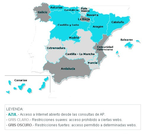 En Galicia, La Rioja, Comunidad Valenciana, Andalucía y, en menor medida País Vasco, Extremadura, Castilla-La Mancha y Murcia, tienen problemas o tiene directamente vetado el acceso a Internet desde las consultas de atención primaria.